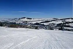Von der Magura Witowska führen zwei Skipisten ins Tal.