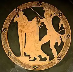 Frauen als Kriegsbeute: Ajax der Kleine bedrängt Kassandra während des Falls von Troja. Kodros-Maler, um 440–430 v. Chr.