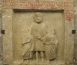 Grabstele für zwei Knaben und ihren Paidagogos, welche in einem Erdbeben ums Leben kamen. Nikomedia, 1. Jh. v. Chr.