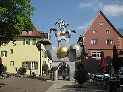 Zwischen den 1970er Jahren und 2003 sanierte die Stadt Bietigheim-Bissingen ihr historisches Stadtzentrum. Ab den frühen 1980er Jahren waren damit Skulpturenausstellungen und die künstlerische Gestaltung öffentlicher Plätze und Parkanlagen verbunden, mit einem deutlichen Schwerpunkt auf figurativen Werken. Nach anfangs heftigen Diskussionen ist ein Kunstensemble entstanden, das heute weit überregionale Bekanntheit genießt. Vor allem die Werke von Jürgen Goertz sind zu nennen: Das Ku(h)riosum, der Turm der grauen Pferde und die künstlerische Gesamtgestaltung der Villa Visconti.[1]