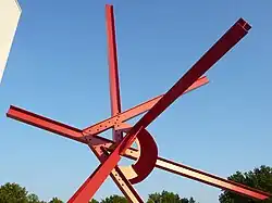 Mark di Suvero | Spring Rain 1992 Stahl Die Stahlskulptur vor dem Technoseum besteht aus signalroten Stahlträgern. |