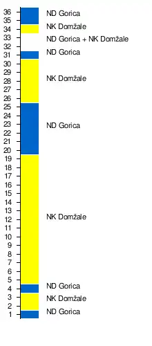 | 1:1 | 4:1 | 2:1 | 1:0 | 5:0 | 2:0 | 3:0 | 4:0 | 4:1 | NK Domžale | 1:1 | 2:0 | 2:0 | 0:2 | 2:1 | 3:1 | 2:0 | 2:1 | 3:0 | ||