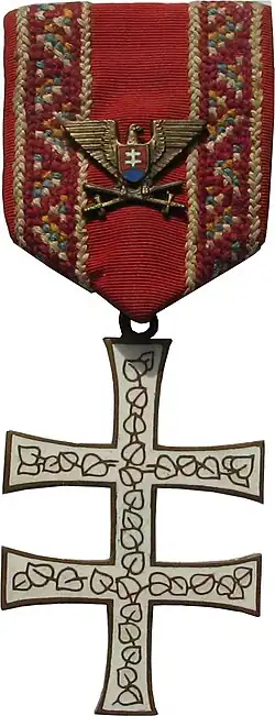 - ↑ Slowakische Regierungserklärung vom 11. September 1939, betreffend Stiftung des Ordens des Kriegs-Siegeskreuzes, § 1