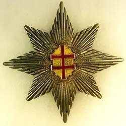 Der silberne Bruststern der I. und II. Klasse ist achtstrahlig und hat das rot emaillierte Ordenskreuz mit seinem Unterstern in der Mitte. Die Collane besteht aus vier Ketten, die aus kleinen, durch Ringe miteinander verbundenen rotemaillierten Ordenskreuzen der höheren Klassen besteht.