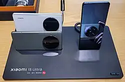 Das Xiaomi 13 Ultra wurde am 18. April vorgestellt. Das Smartphone verfügt über ein 6,73 Zoll großes AMOLED-Display, mit einer WQHD+-Auflösung von 3200 × 1440 Pixel, einer adaptiven Bildwiederholrate von 1–120 Hertz, einer Helligkeit von 2600 Nits, gefertigt aus Corning Gorilla Glas Victus. Auch die Kamera des Xiaomi 13 Ultra wurde wieder gemeinsam mit Leica entwickelt und besteht aus vier Objektiven. Die 50-Megapixel-Hauptkamera verfügt über den Sony-IMX989-Bildsensor mit einer Sensorgröße von einem Zoll, eine variable f/1.9-f/4-Blende und einer 23-mm-Brennweite und OIS, bei der 50-Megapixel-Ultraweitwinkelkamera kommt der IMX585-Bildsensor zum Einsatz, die Brennweite beträgt hier 12 mm. Des Weiteren verbaut Xiaomi ein 50-Megapixel-Teleobjektiv mit dem IMX585-Bildsensor mit 3,2-fach optischem Zoom, einer f/1.8-Blende, einer 75-mm-Brennweite und OIS sowie ein 50-Megapixel-Teleobjektiv, ebenfalls mit dem IMX585-Bildsensor, mit einer Periskop-Optik, mit 5-fach optischen Zoom, einer f/3-Blende, einer 120-mm-Brennweite und OIS. Die 32-Megapixel-Frontkamera hat dann eine f/2.0-Blende. Als Prozessor verwendet Xiaomi den Flaggschiffprozessor Qualcomm Snapdragon 8 Gen 2, als GPU die Qualcomm Adreno 740. Dazu kommen dann wahlweise 12 oder 16 GB LLPDR5X Arbeitsspeicher und 256, 512 GB oder 1 TB interner UFS 3.4-Speicher. Der Akku hat eine Kapazität von 5000 mAh, das Smartphone kann kabelgebunden mit 90 Watt und kabellos mit 50 Watt geladen werden, Reverse Wireless Charging ist mit 10 Watt möglich. Die Abmessungen des Xiaomi 13 Ultra ist 163,18 × 74,64 × 9,06 mm, das Smartphone ist 227 Gramm schwer. Das Xiaomi 13 Ultra verfügt außerdem über Dual-SIM, eSIM, Bluetooth 5.3, USB Typ-C 3.0, NFC, Stereolautsprecher, ist IP68-zertifiziert, es unterstützt WiFi 6 und den Mobilfunkstandard 5G, entsperrt werden kann das Smartphone über einen In-Display-Fingerabdrucksensor. Das Smartphone ist in den Farben Schwarz und Grün erhältlich, die Rückseite wird aus Nano Tech, einem antibakteriellen Silikonleder gefertigt. Zu kritisieren ist, dass die Frontkamera keine 4K-Videos unterstützt sowie die mangelnde eSIM-Option.[25] Bei Marktstart war das aktuelle Betriebssystem Android 13 mit der Benutzeroberfläche MIUI 14.[26][27]