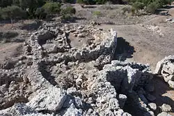 Südlich des Turms befindet sich ein zugangsloser doppelwandiger Rundbau aus kleinen Steinen, der einen Durchmesser von etwa drei Metern hat. Seine Funktion ist nicht vollständig geklärt. Brandspuren im Inneren lassen auf eine Feuerstelle schließen.[4] Es könnte sich um den Teil einer Werkstatt gehandeln haben,[3] der um 750 v. Chr. und erneut in der römischen Zeit ab 123 v. Chr. genutzt wurde.