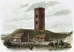 Ziehbrunnen mit Seilrolle – historischer Brunnentyp, wo mit Hilfe der Konstruktion Wasser an die Oberfläche befördert wird.