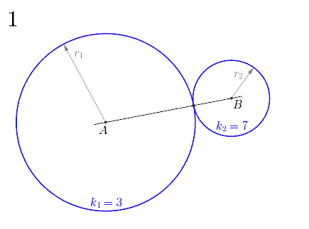 Gegeben sei die Krümmung der Kreise und . Wie in Eigenschaften beschrieben, ergeben sich die Kreisradien aus den Kehrwerten der entsprechenden Krümmung: und .