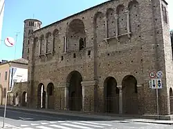 Das aus dem 8. Jahrhundert stammende Gebäudefragment hat eine 20 Meter lange Fassade und steht am Rande des kaiserlichen Areals von Ravenna, auf dem bereits der Palast der Regentin Galla Placidia und später auch der eigentliche Palast Theoderichs (ein anderes Gebäude) gestanden hatte. Aufgrund seiner Lage in unmittelbarer Nachbarschaft der Hofkirche Theoderichs, San Apollinare Nuovo, und wegen einer gewissen Ähnlichkeit seiner Fassade mit einer Mosaikdarstellung des Palasts des Theoderich, die in S. Apollinare Nuovo erhalten geblieben ist, war das Gebäude in der Vergangenheit irrtümlich als Teil des Palasts Theoderichs angesehen worden. Der ursprüngliche Zweck des Gebäudes ist nicht eindeutig geklärt. Mehrere schlichte viereckige Kapitelle der in der Fassade verbauten Säulen sind mit Kreuzen versehen. Aus diesem Grund wird vermutet, dass das Gebäude einem kirchlichen Zweck gedient hatte. Italienische Historiker und die Stadtverwaltung von Ravenna gehen gegenwärtig davon aus, dass es sich um einen Teil der verschwundenen Kirche San Salvatore ad Calchi handelt.