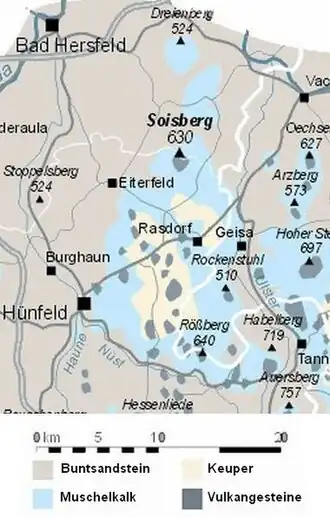 - ↑ Werner Röll: Geographische Landesaufnahme: Die naturräumlichen Einheiten auf Blatt 126 Fulda. Bundesanstalt für Landeskunde, Bad Godesberg 1969. → Online-Karte (PDF; 4,2 MB) – bislang nicht eingeflossen!