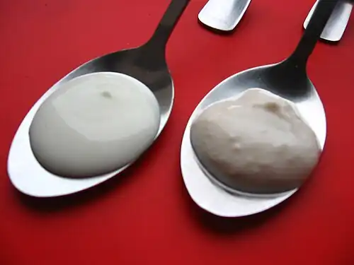 Sojajoghurt ist ein durch Fermentierung hergestelltes Nahrungsmittel aus Sojamilch, das in seinen Eigenschaften Joghurt ähnelt.