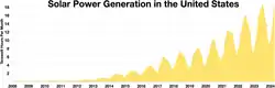 Die Solarenergie in den Vereinigten Staaten weist mit Stand 2024 und steigender Tendenz einen Anteil von ca. 6,9 % an der Stromerzeugung des Landes auf.[1] Die gesamte Solarstromerzeugung in diesem Jahr, einschließlich der geschätzten Erzeugung aus kleinen Photovoltaikanlagen, betrug 303,2 TWh und liegt damit auf Platz 2 hinter China.[2] In den Vereinigten Staaten gibt es ein großes Potenzial für die Erzeugung von Solarstrom, besonders in den sonnigen Staaten des Sun Belt. Im Jahr 2024 stammten 66 % aller neuen Stromerzeugungskapazitäten des Landes aus Solarenergie. Die USA haben sich aufgrund der strategischen Bedeutung der Industrie bemüht, ihre eigene Produktionskapazität zur Produktion von Solarzellen zu steigern und Zölle auf Importe chinesischer Hersteller (die einen Großteil des Weltmarktes kontrollieren) erhöht.[3] 2024 hatten Solaranlagen in den USA genug Kapazität um 32,5 Millionen Haushalte zu versorgen.[4]