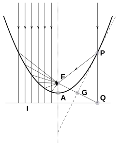 Hier werden Hohlspiegel genutzt, um die Sonnenstrahlung auf einen Punkt zu konzentrieren und damit um ein Vielfaches zu verstärken. Spiegel mit parabelförmigem Querschnitt sind hierfür besonders geeignet, weil sie auch noch die Randstrahlung auf die Mitte fokussieren können. Werden die Spiegel in Form einer Rinne konstruiert, kann die Sonnenstrahlung, um etwa das Vierzigfache konzentriert, auf ein Absorberrohr mit wärmeleitender Flüssigkeit gelenkt werden. Zur Erhöhung der Leistung sind die Parabolrinnen in Nord-Süd-Richtung angeordnet und können durch eine verstellbare Längsachse im Tagesverlauf der Sonne von Ost nach West nachgeführt werden. Die Wärmeleitflüssigkeit wird in ihrem zirkulierenden System bis auf 400 °C erhitzt und produziert über Turbine und Generator Strom. Eine bekannte großtechnische Anlage ist das Parabolrinnenkraftwerk in der kalifornischen Mojave-Wüste. Es hat insgesamt 2,3 Mio. Quadratmeter (2,3 km²) Spiegelfläche und erzeugt 354 MW elektrische Leistung. Ähnliche Großanlagen sind unter anderem auf Kreta, in Ägypten und Indien geplant. Eine Weiterentwicklung der Parabolrinnen sind sogenannte Fresnel-Spiegel-Kollektoren. Bei ihnen wird das Sonnenlicht über mehrere zu ebener Erde angeordneten parallele, ungewölbte Spiegelstreifen (nach dem Prinzip einer Fresnel-Linse) auf ein Absorberrohr gebündelt. Die Streifen werden einachsig nachgeführt. Ein zusätzlicher Sekundärspiegel hinter dem Rohr lenkt die Strahlung auf die Brennlinie. Dieses Konzept befindet sich derzeit in der praktischen Erprobungsphase.