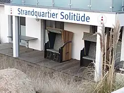 Zum Ende des 20. Jahrhunderts wurde der Solitüder Strandpavillon westlich vom Weg zur Badebrücke errichtet.[25][26] In ihm fanden ein Restaurant, ein Kiosk, sanitäre Anlagen sowie die DLRG Platz.[27] Ab 2014 wurden der Restaurant- und Kioskbereich des Pavillons zeitweise nicht mehr genutzt[25]; seit Mai 2016 befand sich darin ein Bistro.[28] Seit der Insolvenz des neuen Pächters im Jahr 2023 wird der Pavillon derzeit nicht bewirtschaftet.