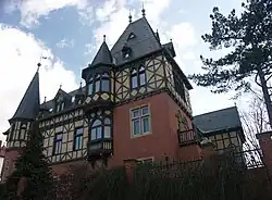 Prinz Albrecht zu Solms-Braunfels ließ den Bau 1890 bis 1892 für sich nach den Plänen des Hannoveraners Ferdinand Schorbach erbauen. Das nach malerischen Gesichtspunkten konzipierte Gebäude mit unregelmäßigem Grundriss, mehreren Erkern und Ecktürmchen sowie Fachwerk-Obergeschossen entstand nach dem Vorbild des 1881 bis 1885 von Edwin Oppler umgebauten Schlosses Braunfels. Es besitzt eine eigene Kapelle sowie eine große, über zwei Stockwerke reichende und ganz aus Holz bestehenden Halle. Letztere wurde nach dem Vorbild englischer „halls“ im neogotischen Stil angelegt.