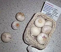 - ↑ Vivi Konstantinidou: Griechische Knoblauchsorten. In: Zeitschrift Gastronomos. Verlag Kathimerini, 26. Mai 2020 (griechisch, gastronomos.gr [abgerufen am 16. Februar 2023] Soloknoblauch griechischer Herkunft).