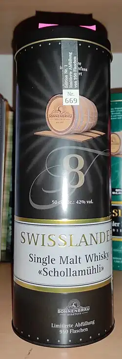 - ↑ a b Swisslander Rheintaler Bierbrandy. Sonnenbräu AG, archiviert vom (nicht mehr online verfügbar) am 4. Dezember 2013; abgerufen am 29. November 2013. Info: Der Archivlink wurde automatisch eingesetzt und noch nicht geprüft. Bitte prüfe Original- und Archivlink gemäß Anleitung und entferne dann diesen Hinweis.