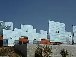 Ein turmartiger Bau zwischen Konzentrator und Heliostaten, der sogenannte Prozessturm, beinhaltet den Ort des Brennflecks und beherbergt die Experimentierstationen.[1]
