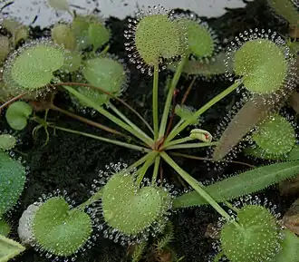 - ↑ Siegfried R. H. Hartmeyer, Irmgard Hartmeyer: Several pygmy Sundew species possess catapult-flypaper traps with repetitive function, indicating a possible evolutionary change into aquatic snap traps similar to Aldrovanda. In: ICPS (Hrsg.): CPN. Band 44, Nr. 4, 2015, S. 172–184 (carnivorousplants.org [PDF]).