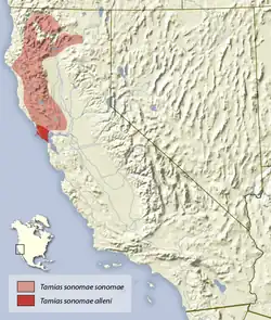 - Tamias sonomae sonomae (Grinnell, 1915): Nominatform; kommt im gesamten Verbreitungsgebiet vor und ist etwas größer und heller als Tamias sonomae alleni.