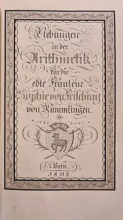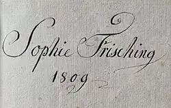 Aus Sophies Besitz haben sich zwei anonym verfasste Klavierbücher erhalten, die 1994 in Auszügen durch Annerös Hulliger in Bern veröffentlicht wurden.[2] Am 3. Juni 2022 wurde das Manuskript mit dem Titel Uebungen in der Arithmetik für die edle Fräulein Sophie von Frisching von Rümmlingen. Bern 1808 in Zofingen versteigert. Aus dem Inventar des Schlosses Amsoldingen wurde am 4. Juni 2022 das von Johann Daniel Mottet 1816 gemalte Porträt der Sophie von Wattenwyl versteigert.[3]