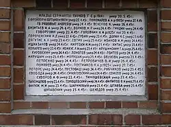 Die übrigen drei Tafeln tragen die Namen und Lebensdaten der namentlich bekannten gefallenen sowjetischen Soldaten und Offiziere.