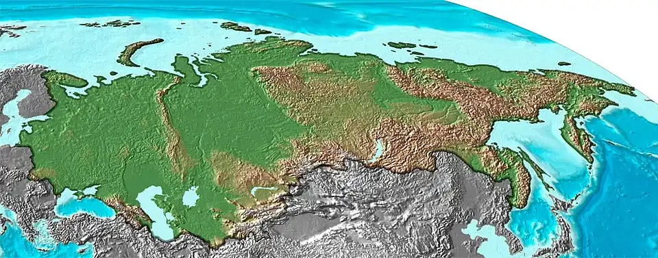 Etwa 78 % der Fläche (1990) bestand aus der Russischen Sowjetrepublik (RSFSR), die im Zuge der Oktoberrevolution am 7. November 1917 aus dem Kern des Zarenreiches hervorgegangen war und auf welche als unabhängige Russische Föderation nach der Auflösung der Union deren „Verbindungsfaden mit der Außenwelt übergegangen ist“.[6] Die RSFSR hatte zuvor – anders als die übrigen ehemaligen Sowjetrepubliken – ihrerseits keine Unabhängigkeitserklärung abgegeben,[7] was nicht mit der „Deklaration der staatlichen Souveränität“ der Russischen Föderation vom 12. Juni 1990, der heute als „Tag Russlands“ gefeiert wird, zu verwechseln ist.
