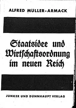- ↑ Vgl. Alfred Müller-Armack: Staatsidee und Wirtschaftsordnung im neuen Reich, Berlin 1933.
