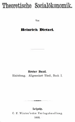 - ↑ Heinrich Dietzel: Theoretische Socialökonomik, Bd. 1, Leipzig 1895 (= Adolph Wagner/Karl Bücher/Heinrich Dietzel (Hrsg.): Lehr- und Handbuch der politischen Oekonomie, Zweite Hauptabtheilung: Theoretische Socialökonomik).