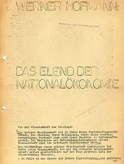 - ↑ Vgl. im Überblick und zitiert nach Simon Melch: Werner Hofmanns Überlegungen zur Wissenschaftssoziologie der Nationalökonomie, in: Soziologie, 43/4 (2014), S. 426ff., S. 433 und 436 (Hervorhebung im Original).