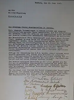 Der Vorstand wurde mehrheitlich von den jüngeren Kollegen beherrscht. Sie waren stärker geprägt von dem Versagen der gespaltenen Arbeiterbewegung vor dem heraufziehenden Nationalsozialismus und strebten aus der Erfahrung heraus einen völligen Neuanfang mit einer starken Einheitsgewerkschaft an.[2]