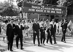 Eine weitere Form des antikommunistischen Widerstands, diesmal gewaltlos, war die Studentenbewegung von 1956. Als Reaktion auf die antikommunistische Revolte in Ungarn gab es überall im Ostblock Widerhall. In einigen Universitätszentren fanden Proteste statt, die zu zahlreichen Verhaftungen und Ausweisungen führten. Die am stärksten organisierte Studentenbewegung fand in Timișoara statt, wo 3000 Personen verhaftet wurden.[20] In Bukarest und Cluj bildeten sich organisierte Gruppen, die versuchten, mit der antikommunistischen Bewegung in Ungarn gemeinsame Sache zu machen und ihre Aktivitäten zu koordinieren. Die Behörden reagierten sofort: Studenten wurden verhaftet oder von ihren Kursen suspendiert, einige Lehrer wurden entlassen, und es wurden neue Vereinigungen gegründet, um die Aktivitäten der Studenten zu überwachen.