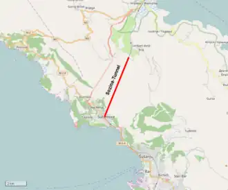 Mit dem Bau des Tunnel wurde 1954 begonnen. Er wurde im Zuge der neuen Normalspurstrecke Bar–Titograd gebaut, die nicht nur ein zukünftiger Streckenabschnitt der Verbindung Bar–Belgrad werden sollte, sondern auch die Schmalspurstrecke Bar–Virpazar ersetzen sollte. Die Strecke wurde 1959 eröffnet.[1]