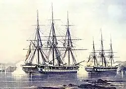 Am 31. März 1866 wurde die unbefestigte Stadt Valparaíso von der spanischen Flotte bombardiert. Die Fregatten Numancia, Blanca, Villa Madrid, Resolución und Vencedora beschossen die Stadt rund sechs Stunden lang, wobei etwa 2600 Granaten verschossen wurden. Die Stadt wurde schwer beschädigt. Wegen der Vorwarnzeit kam es nur zu fünf Toten und einigen Verletzten.[2] Die Bombardierung wurde international scharf kritisiert. Im britischen Unterhaus wurde der Beschuss der Stadt beispielsweise ein Verbrechen wider die Menschlichkeit genannt.