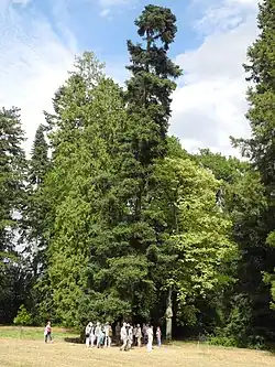 Spanische Tanne im Schlosspark Riede (möglicherweise das älteste Exemplar seiner Art in Deutschland, Stammumfang: 2,80 m, Pflanzjahr: um 1856, Photo 2019)