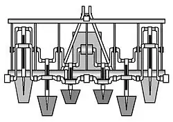 Auf einer horizontalen Welle quer zur Arbeitsrichtung befinden sich spatenförmige Messer, die versetzt zueinander angeordnet sind. Diese rotieren ähnlich wie bei einer Fräse. Es ist hierbei das Entstehen eines Schmierhorizontes im Boden möglich.[4]