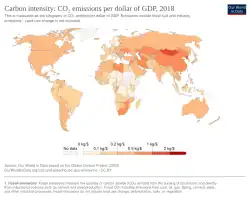 - ↑ Carbon intensity: CO₂ emissions per dollar of GDP. In: OurWorldInData.org. 20. Juni 2024, abgerufen am 29. September 2024 (englisch).
