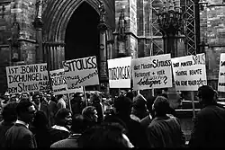 Demonstranten vor dem Eingang zum Untersuchungsgefängnis in Hamburg am 31. Oktober 1962