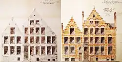 Das aus zwei Häusern bestehende Gebäude geht in seiner heutigen Form auf Umbauten im Jahr 1898 nach einem Entwurf des Brügger Architekten Louis de la Censerie zurück, bei denen zwei Gebäude mit unterschiedlichen Giebeln zu einem Wohnhaus vereint wurden. Nach Süden zum Kanal hin verfügt das Gebäude über zwei Stufengiebel, wobei der rechte deutlich größer ist. Bei den Umbauten blieb die Gestaltung der Türrahmen im Louis-seize-Stil erhalten.