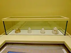 Teil des „Spielbretts“ mit den „Spielsteinen“ im Museum von Iraklio