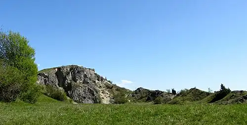 - der vielfältigen, ökologisch wertvollen und vernetzten Biotoptypen, wie z. B. Kalkmagerrasen, Felsen, Schuttfacies, Magerrasen, Feldgehölze, Hecken, Feuchtgebiete, Laubwald, Blockhalden und Streuobstwiesen,