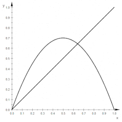 Ein Lémeray-Diagramm, Spinnwebdiagramm, Spinnwebplot oder Verhulst-Diagramm ist ein visuelles Werkzeug, das im Gebiet der dynamischen Systeme der Mathematik zur Betrachtung des qualitativen Verhaltens von eindimensionalen iterierten Funktionen wie der logistischen Abbildung verwendet wird. Die Methode wurde Ende 19. Jahrhundert von E.-M. Lémeray vorgeschlagen.[1] Ihre Anwendung macht es möglich, auf den Langzeitstatus einer Anfangsbedingung unter wiederholter Anwendung der Abbildung zu schließen.[2]