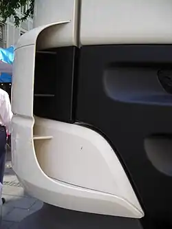 Ein Spoiler ist bei Pkw oder Lkw ein Bauteil, dessen Hauptzweck ist, die Umströmung des Fahrzeugs zu beeinflussen.