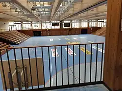 Das Gebäude bedeckt eine Gesamtnutzfläche von 4400 m². Durch einen Mittel- und zwei Quervorhänge kann die Sportfläche in zwei oder vier Hallen unterteilt werden. Vier ausfahrbare Tribünen bieten 1200 Sitz- und weitere 400 Stehplätzen.[3]