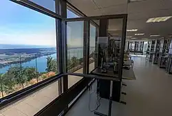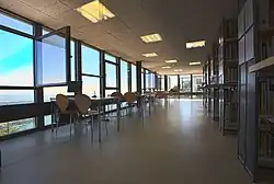 Das Anwachsen der Bestände schuf immer grössere Platzprobleme und wirkte sich auf die Statikprobleme des Grand Hotel aus. Nachdem ein erdbebenartiger Ruck das Haus erschütterte, mussten die Bücher auf verschiedene Stockwerke verteilt werden, was zu einem sehr umständlichen Zugang zu der Literatur führte. Der Neubau des Schulgebäudes löste die Platzprobleme, im obersten Stockwerk wurden Bibliothek und Filmverleih untergebracht. Als Freihandbibliothek standen die Bücher nun der Allgemeinheit zur Verfügung, auch eine Leseecke wurde eingerichtet. 1983 kam es wegen erneuten Platzproblemen zu einer Verkleinerung der Leseecke und zum Beginn der Mikroverfilmung der umfangreichen Fachzeitschriften. Zudem wurde der Filmverleih abgegeben, um die fachkundige Wartung der Filme zu sichern.