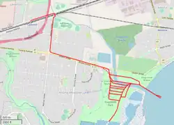 Die Schmalspurbahnstrecke mit einer Spurweite von 610 mm (2 Fuß) begann am Bahnhof von Laverton und führte entlang der heutigen Merton Street und der heutigen Queen Street durch das Sprengstofflager Truganina zu einem Steg in der Altona Bay.[2][3] Sie hatte acht parallel zur Hauptstrecke verlaufende Nebengleise sowie einen Schuppen und Abstellgleise am Bahnhof Laverton.[3]