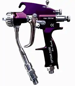 Eine Spritzpistole ist ein Werkzeug zum Auftragen von Lacken und Dispersionsfarben, das nach seiner Verwendung auch als Lackierspritzpistole oder Farbspritzpistole (umgangssprachlich teilweise ohne den Zusatz …spritz…) bezeichnet wird. Das Material wird mit Hilfe von Druckluft aus einem Kompressor oder einer Pumpe zerstäubt und auf den zu beschichtenden Gegenstand aufgetragen. Im Vergleich zum manuellen Lackauftrag mit dem Pinsel kann durch den Einsatz einer Spritzpistole die Wirksamkeit gesteigert werden. Durch die Zerstäubung des Lackes wird eine wesentlich bessere Oberflächenqualität erzielt.[1]