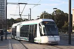 Tramway sur pneumatiques nach dem System Translohr im Pariser Vorort Sarcelles