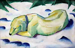 - 1919: Franz Marc, Liegender Hund im Schnee (1911), Öl auf Leinwand, Städel Museum, Frankfurt am Main, Erworben 1919, beschlagnahmt 1937, rückerworben 1961, Eigentum des Städelschen Museums-Vereins e.V.[18]