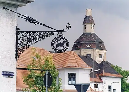 Die Schlachthofanlage von Stadtbaurat Hans Erlwein, die aus 68 einzelnen Gebäuden bestand, wurde nach fünfjähriger Bauzeit am 19. August 1910 eingeweiht. Das Gebäudeensemble im Heimatschutzstil[8] wurde in Form einer Siedlung errichtet, die von einer Ringstraße umfasst wird. Der städtebauliche Höhepunkt der „kleinen Stadt“[9] ist ein Platz, der von repräsentativen Gebäuden, wie Hotel mit Gastwirtschaft, Pförtnerhaus und Verwaltungsgebäude umgeben ist. Der Gebäudekomplex zeigt eine fast einheitliche aber abwechslungsreiche und aufwändige Gestaltung. Die Gebäude sind als helle Putzbauten in einem ländlichen Architekturstil gestaltet worden. Damit versuchte Hans Erlwein nicht nur Wohnhäuser, sondern auch Industrie- und Zweckbauten ein malerisches, nostalgisches Erscheinungsbild zu geben. Das Ergebnis war ein von Erlwein regional repräsentierter Baustil im äußeren Erscheinungsbild.